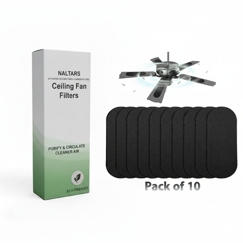 Naltars Ceiling Fan Air Purifier Pads | Activated Coconut Shell Carbon Fan Filters Trap Dust | Easy-Stick Universal Fit for Blades Pack of 10